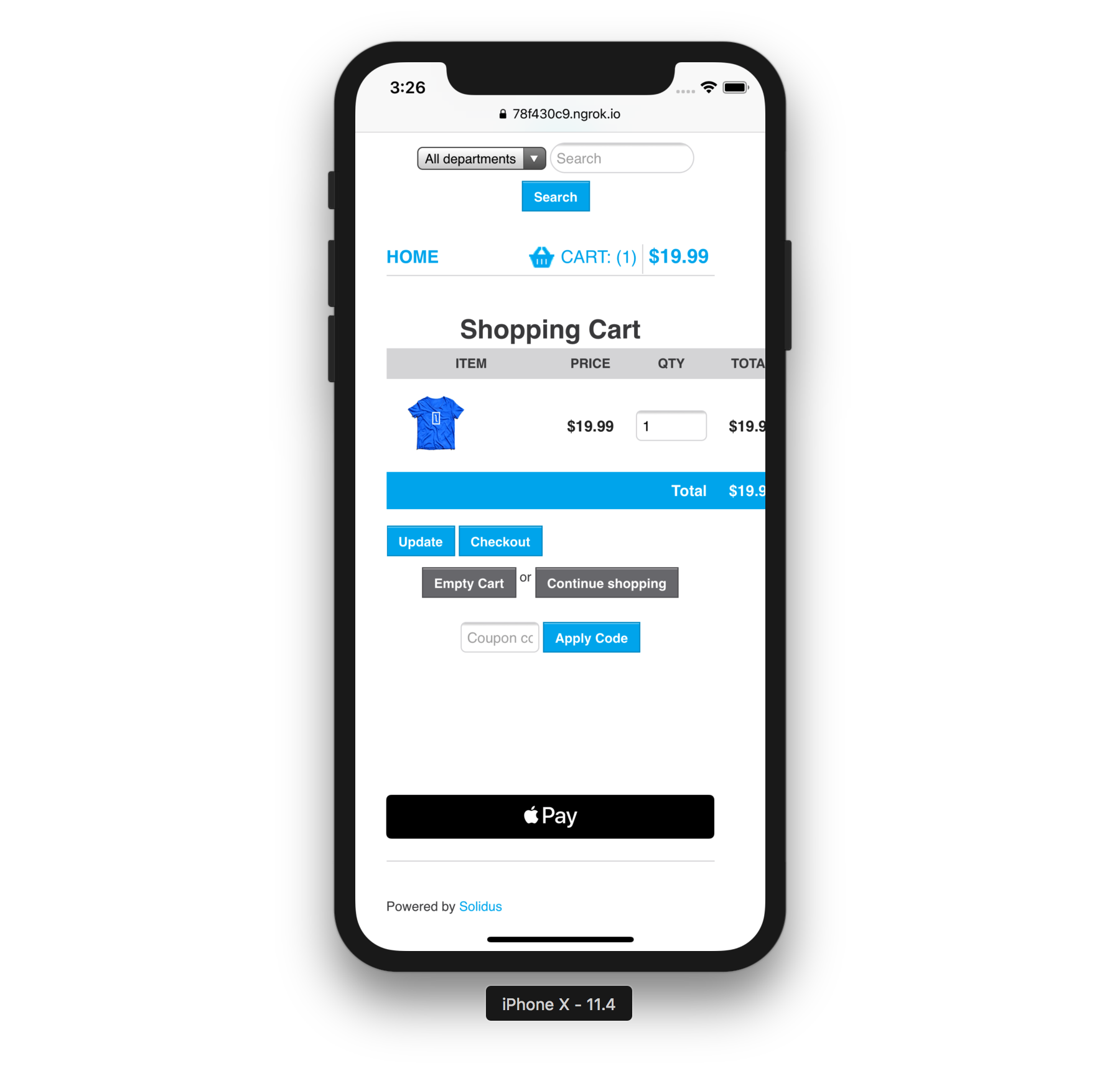 The payment request button can be mounted directly on the cart page, allowing customers to entirely skip the usual Solidus checkout process. This makes the guest checkout easier, faster and more convenient, increasing conversions.